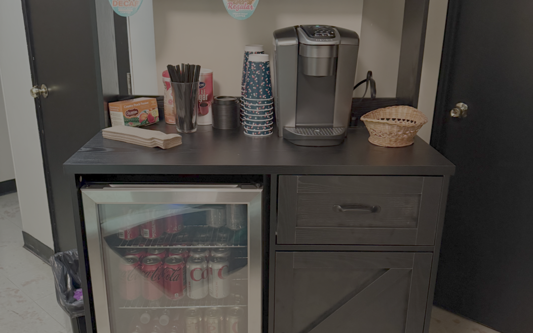 Since it is in the back corner, it may not be as accessible as intended. In the coming weeks, we may try moving it to a more regularly traveled part of the hallway. Please be sure to check it out and grab a refreshment when you are in the building!
