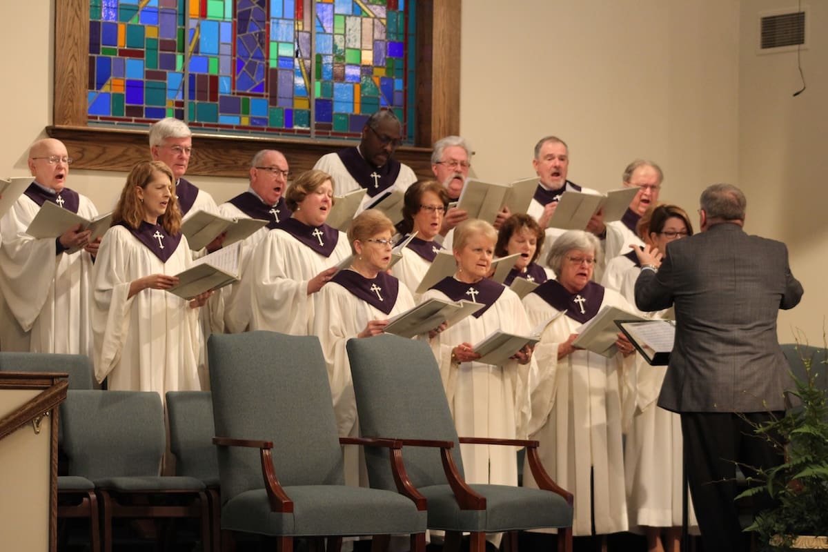We sing hymns together as a congregation, and most Sundays, the volunteer sanctuary choir sings an anthem.